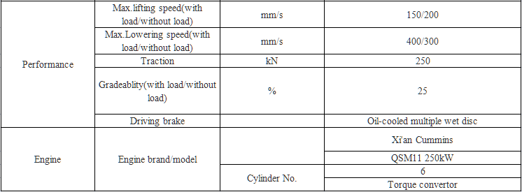 · Gírskiptingar: Hangchi Planetary Transmission, Hangchi Rafeindastýrð Transmission, Germany ZF Transmission, Powershift fast-shaft tegund vökvaskipti.